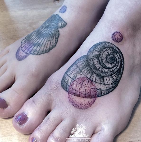 Molti dei significati di cui sopra, attribuiti alla conchiglia come elemento in sè, sono stati poi trasferiti anche nel mondo dei tatuaggi, dove la conchiglia è effettivamente, ancora oggi, un simbolo di maternità, di fertilità, di buon augurio. È anche un simbolo di protezione e di solidità, ed è altresì un elemento che può richiamare alla mente la propria vicinanza al mare, alla spiaggia, alle coste.