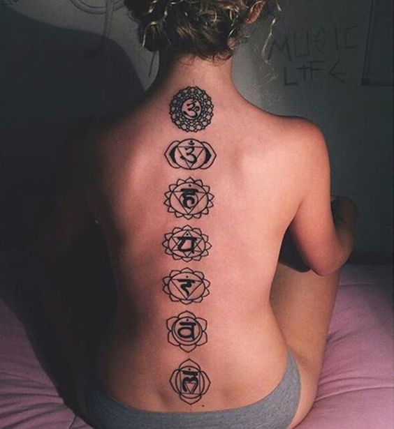Avrai sicuramente sentito parlare dei chakra. Si tratta di una parola sanscrita che significa “ruota” o “cerchio”. I Chakra sono punti focali del nostro corpo, usati in una varietà di antiche pratiche di meditazione. Le persone che sono appassionate di meditazione o che meditano ameranno sicuramente l’idea di farsi tatuare i Chakra sulla spina dorsale. Questi Chakra sono in numero di 7 e ogni Chakra ha il suo colore dedicato: per esempio, il chakra del cuore è indicato dal colore verde. Perché non realizzarli sulla spina dorsale?