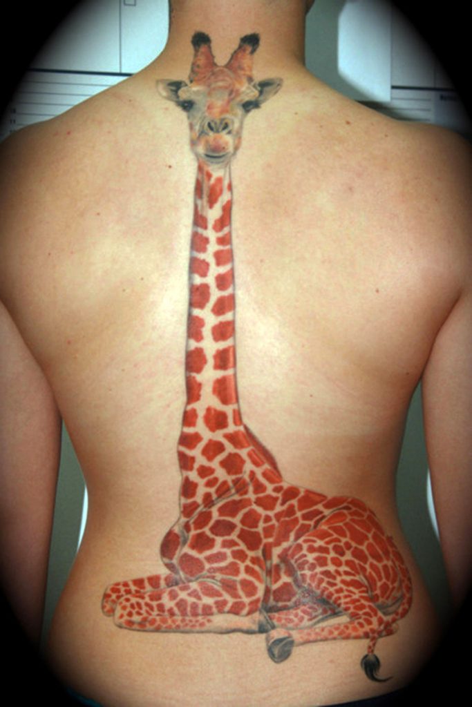 Immagina una giraffa seduta sulla tua schiena. Una scelta sicuramente originale, che se vorrai potrà anche coprire l’intera spina dorsale insieme alla parte bassa della schiena. Si tratta di un design perfetto per gli amanti degli animali che non esitano a sfoggiare il loro amore per il genere.