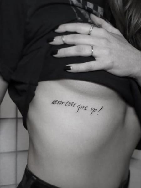 Se stai cercando di ritrarre più di una parola sotto il seno, allora un tatuaggio con una citazione potrebbe essere una scelta davvero fantastica. La citazione potrebbe essere una frase che ti è particolarmente cara o che ti ispira, e che può presa da qualsiasi parte, come il tuo film preferito, un testo che ami o una poesia che ti è rimasta in testa. Ci sono molte opzioni tra cui scegliere, e in ogni caso sembra essere una scelta eccellente per le donne di tutte le età.